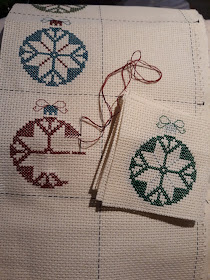 Obecnie wyzywam tabunami bombki i choinki, które posłużą mi za bazy ... przyszłorocznych kartek świątecznych. Miały być kaczuszki i pisanki, ale na to przyjdzie jeszcze czas. Wszystko z myślą o uszczupleniu pudełek z mulinami, bo pękają w zawiasach oraz z myślą o TUSAL 2018 organizowanym przez Hanulkę.